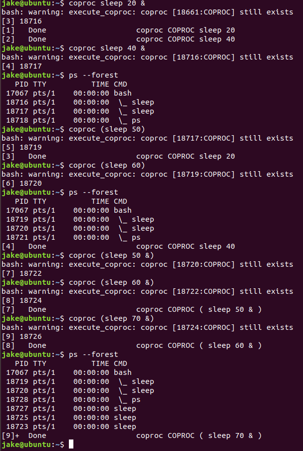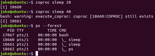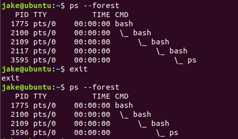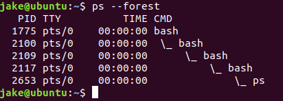 ps --forest 명령은 서브 쉘들이 어떻게 가지를 쳤는지 보여준다.