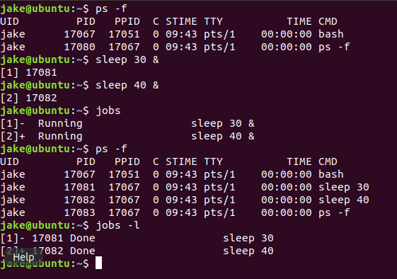 참고로 ps -help 명령을 이용하면 ps 명령에 관한 다양한 옵션들을 볼 수 있다.