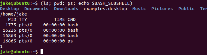 그리고 괄호 쌍의 갯수만큼 서브 쉘을 생성한다.